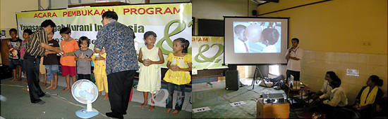 지난 5월 28-29일 멩탕트렝구훈 주민센타 강당에서는 우리단체 인도네시아지부 지역개발사업 개막식이 개최되었습니다. 우리단체 인도네시아 지부의 사업 방향과 목적을 소개하고 지역 사람들의 협조 모으기 위한 이 자리에는 학부모들과 지역 지도자들, 지역의 저명인사들 325명이 참석하였습니다.