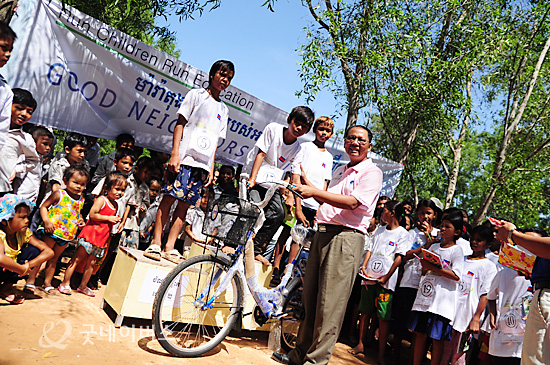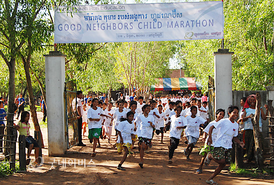 굿네이버스 캄보디아 지부는 2009년 12월 국제마라톤대회에 뱅몽 지역 5명의 아동들이 참여하여 하프 코스를 완주한 것을 계기로, 보다 많은 아동들이 마라톤 대회에 참석할 수 있는 방안을 모색하다, 뱅몽 지역에 어린이 마라톤대회를 개최하기로 결정하고, 지역 보건소와 학교, 경찰서, TV 방송국과의 긴밀한 협조하에 준비하여 성황리에 대회를 마쳤습니다.