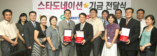 우리 단체는 지난 7월 24일 (주)인터파크지마켓, (주)일간스포츠, 중앙엔터테인먼트&스포츠(주)와 함께 행복한 공부방 만들기 "스타도네이션" 기금전달식을 진행하였습니다.