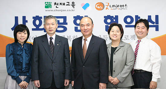지난 10월 10일, 우리단체는 (주)천재교육과 사회공헌협약을 체결하였습니다. 우리단체 이일하회장과 (주)천재교육 오병목 사장이 참석한 가운데 열린 이날 협약을 통해 전국 결식아동을 대상으로 사랑의 도서(교재)를 전달하게 됩니다.