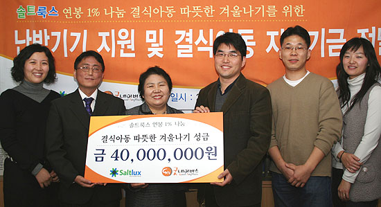 지난 12월 14일(목), (주)솔트룩스(대표 이경일)는 우리단체 정금선 부회장을 만나 결식아동지원을 위한 기금 4천만 원을 전달하였습니다.