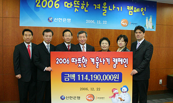 지난 12월 22일, 신한은행 본점 6층 임원실에서 신한은행 채홍희 부행장, 김종철 부장, 박종연 부장과 우리단체 정금선 부회장, 홍선교 부장 등 관계자가 참석한 가운데 진행된 기탁식에서 1억여 원의 기금이 전달되었습니다. 이번 기금은 신한금융지주와 신한은행의 임직원들이 연말 결식아동과 불우이웃의 따뜻한 겨울나기를 돕기 위해 마련한 다양한 행사를 통해 마련된 후원금입니다.