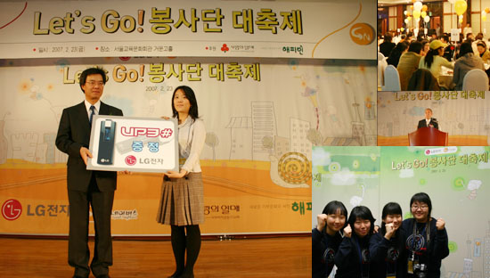 이번 행사는 봉사단 1기 활동을 마무리하고, 다양한 영역에서 봉사의 손길을 나눈 단원들을 격려하기위해 마련되었습니다. 이날 행사에는 자문단의 심사를 거쳐 선발된 우수 동아리 10개 팀에 대한 시상이 있었으며, 대학생 봉사단이 직접 준비한 합창 및 수화 공연도 선보였습니다. 그 외에도 B-boy 초청 공연, 만찬 등 다양한 볼거리와 먹을거리로 흥겨운 축제의 장을 만들었습니다.