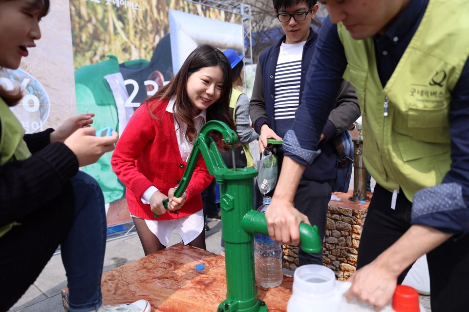 이번 캠페인은 ‘물 한 방울의 기다림’을 주제로 깨끗한 물을 얻을 수 있는 선진국과는 달리 물을 얻기 위해 평균 3시간 이상 이동하고, 어렵게 구한 물마저도 오염되어있는 상황에 처해있는 개발도상국의 현실을 알리기 위해 마련됐다. 이날 캠페인에 참여하는 시민들은 스텝퍼에서 뛰는 만큼 말라있는 우물에 물이 차오르는 '10초 안에 100L 채우기', 개발도상국의 식수펌프를 직접 체험할 수 있는 ‘수동펌프로 물 기르기' 등의 체험활동에 참여했다.