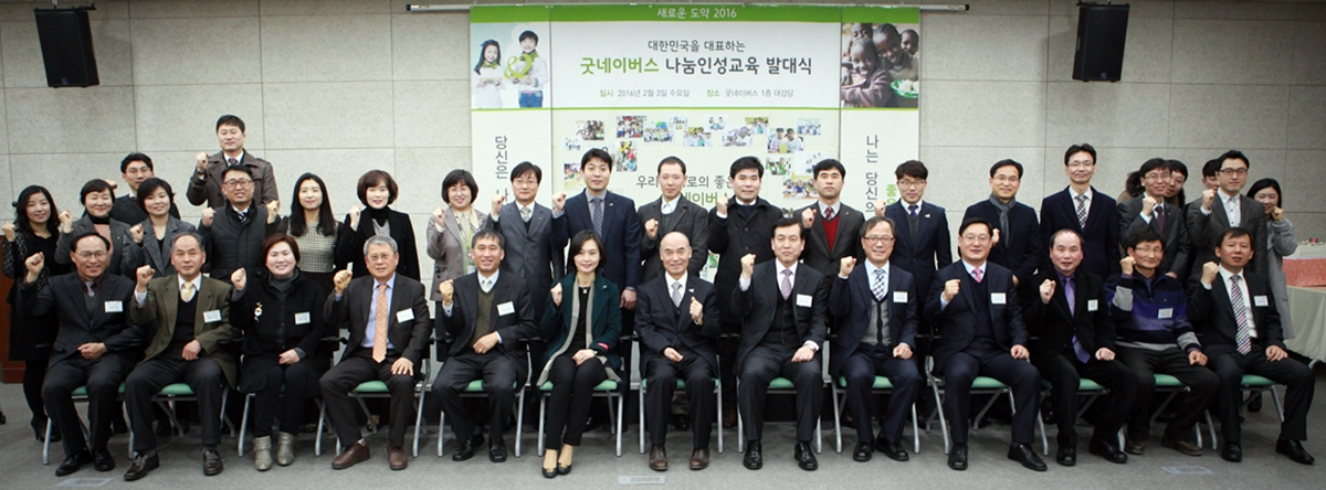 국제구호개발 NGO 굿네이버스(회장 이일하, www.gni.kr)는 3일 영등포구 굿네이버스 본부 1층 강당에서 2016년 전국교육전문위원 대표단과 함께 나눔인성교육 발대식을 진행했다.