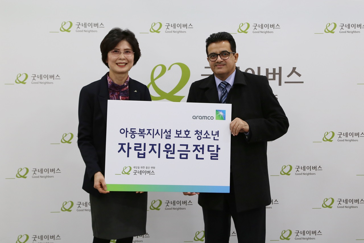 이 사업은 아람코가 사업을 진행하는 지역의 지속적인 발전을 추구하기 위해 시작됐으며, 굿네이버스를 통해 아동복지시설 보호 청소년들이 퇴소를 준비하는 과정에서 부딪히는 경제적, 심리적인 한계를 극복하고 자신감을 회복하도록 도울 예정이다.(끝)