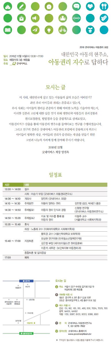 ○ 14일(수), 페럼타워 페럼홀에서 ‘2016 굿네이버스 아동권리 포럼’ 개최