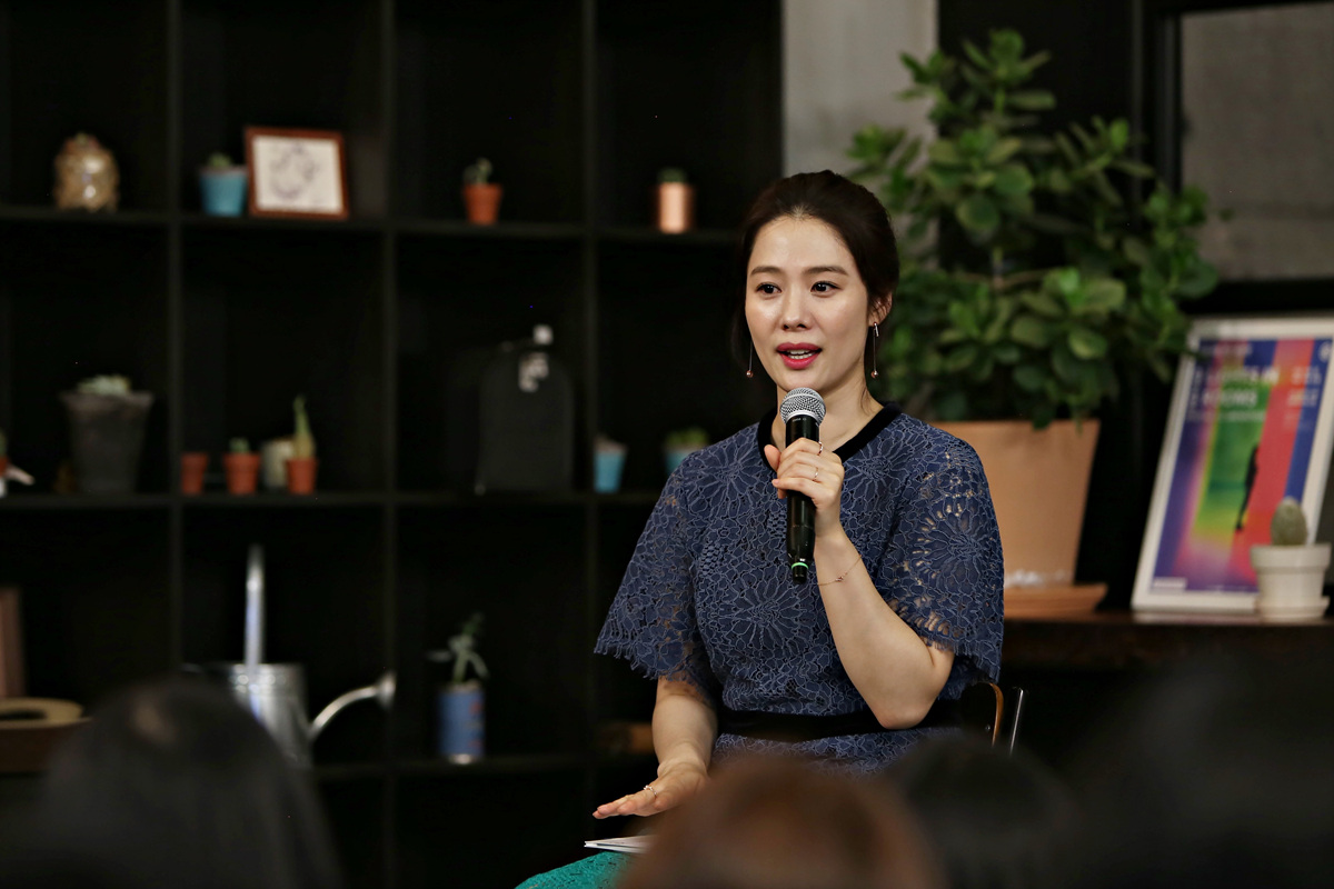 ▲ 25일, 성수동에서 진행한 나눔 토크콘서트에서 김현주 홍보대사가 이야기하는 모습