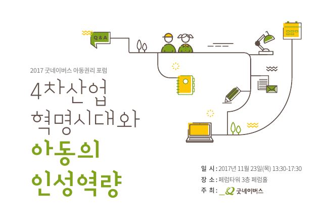 국제구호개발 NGO 굿네이버스(회장 양진옥, www.gni.kr)는 오는 23일(목), 페럼타워 페럼홀(중구 소재)에서 ‘4차 산업혁명 시대와 아동의 인성역량’이라는 주제로 2017 굿네이버스 아동권리 포럼을 개최한다.