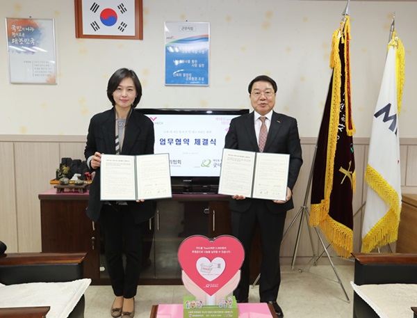 ▲ 협약식에 참석한 양진옥 굿네이버스 회장과 현기붕 한국건강관리협회 사무총장.