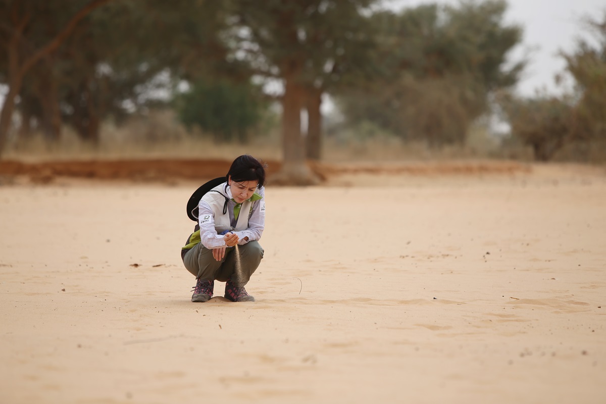 ▲ 배우 이혜숙이 아프리카 니제르의 메마른 강바닥을 만지는 모습.