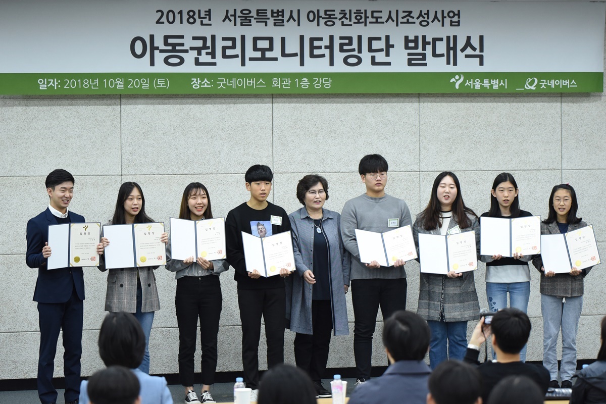 이번 발대식에는 문미란 서울특별시 여성가족정책실장이 참석해‘2018 서울특별시 아동권리모니터링단’으로 선발된 학생들에게 직접 임명장을 수여했으며, 양진옥 굿네이버스 회장이 위촉된 학생들을 격려하는 시간을 가졌다. 또한, 이번 발대식에는 경인교육대학교 사회과교육과 설규주 교수가 참석해 아동의 4대 권리 중 하나인 참여권과 정책입문 과정에 대해 강연했고, 더불어 서울특별시 아동친화도시조성사업의 일환으로 다음 달 3일 진행 예정인 아동참여박람회를 위해 아동권리모니터링단 학생들이 함께 모여 참여방안을 논의하기도 했다.