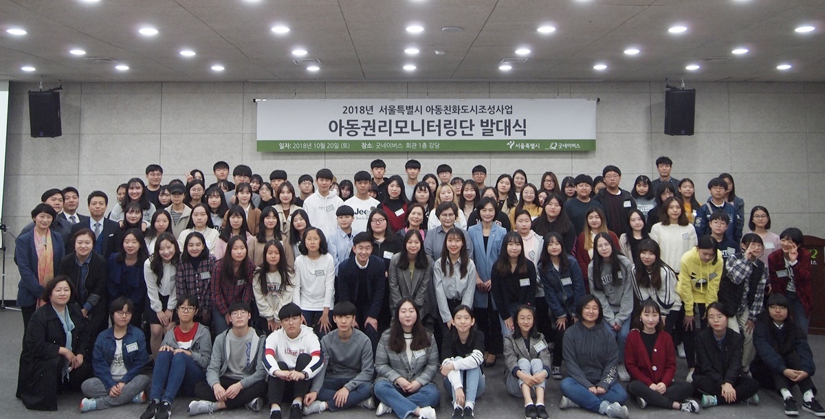 20일(토), 국제구호개발 NGO 굿네이버스(회장 양진옥, www.gni.kr)는 서울특별시(시장 박원순)와 함께 굿네이버스 회관 강당에서‘2018 서울특별시 아동권리모니터링단’발대식을 진행했다. 서울특별시 아동친화도시조성사업의 일환으로 진행되는 이번‘2018 서울특별시 아동권리모니터링단’활동은 서울특별시 내 초·중·고등학교 학생 100여명으로 구성되었으며 아동·청소년이 자신이 권리의 주체임을 알고, 스스로의 일상 속에서 자신과 타인의 권리를 보호 및 존중하는 역량 증진에 도움을 주기 위해 마련됐다.