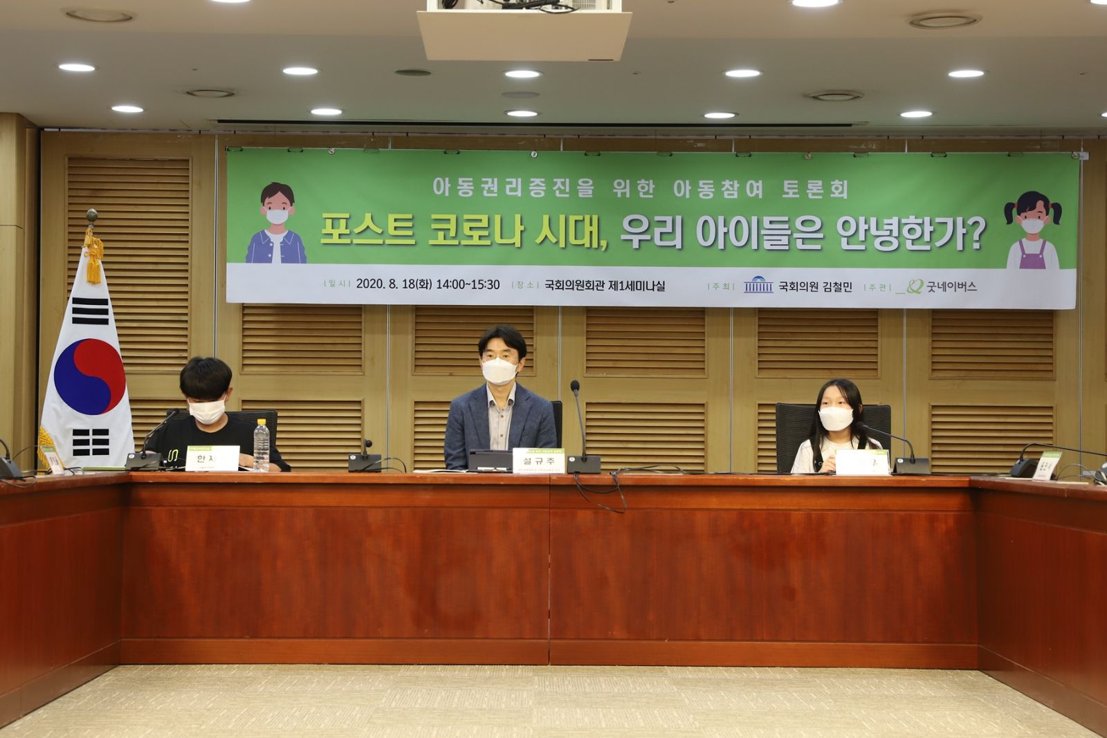 국제구호개발 NGO 굿네이버스는 18일(화), 국회의원회관 제1세미나실에서 ‘아동권리증진을 위한 아동참여 토론회’를 개최했다. 김철민 더불어민주당 국회의원 주최, 굿네이버스 주관으로 열린 이번 토론회는 포스트 코로나 시대에 아동 정책 당사자인 아동들의 목소리를 직접 듣고, 아동권리 증진을 위한 다양한 방안을 모색하기 위해 진행됐다.