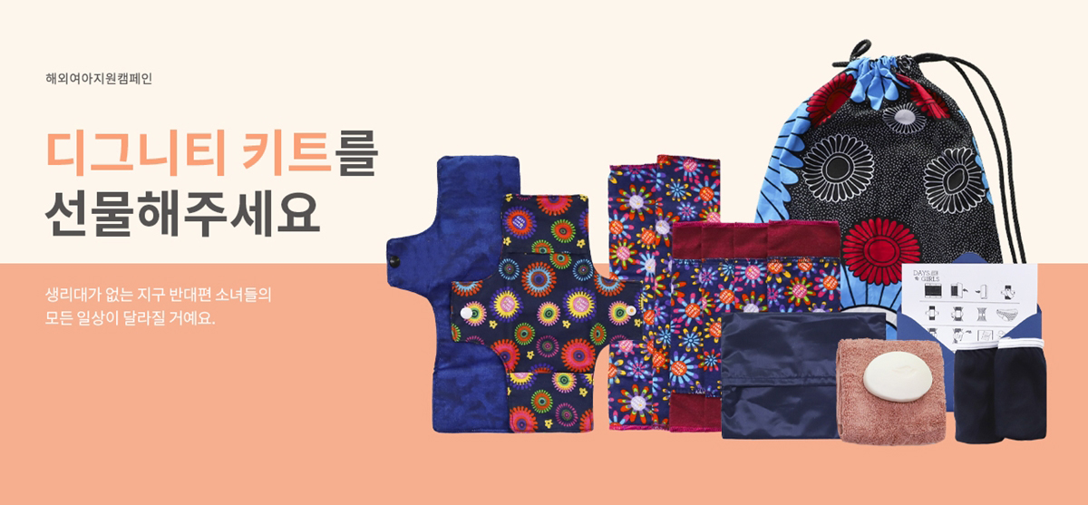해외여아지원캠페인은 굿네이버스 홈페이지에서 참여 가능하다. 캠페인에 참여하면 아프리카를 포함한 전 세계 여아에게 ‘디그니티 키트’가 지원된다. ‘디그니티 키트’는 ‘소녀들의 자존감(Dignity)을 지킨다’는 뜻으로 면 생리대와 흡수 패드, 백팩으로 사용 가능한 키트 주머니, 위생 팬티, 비누 등으로 구성됐다. 또, 생리에 대한 올바른 정보를 얻을 수 있도록 생리 주기표와 사용 안내서도 키트에 포함했다.