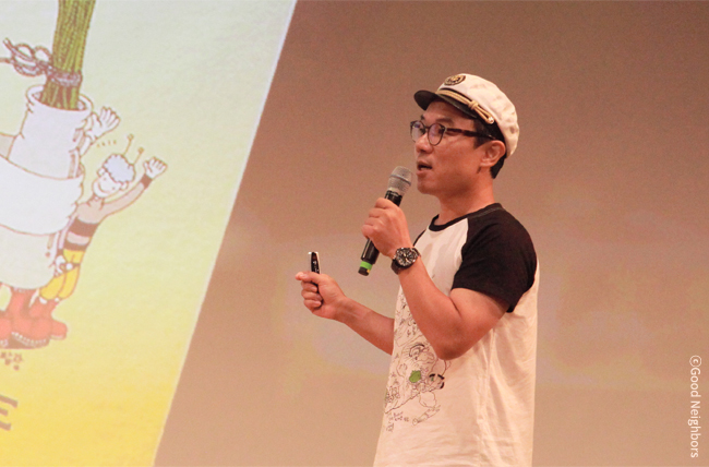 “저는 일러스트레이터입니다. 동료들과 나눔조합을 만들었고 남수단 봉사활동을 다녀왔었어요. 흔히들 아프리카는 왠지 물가가 쌀 것 같다고 생각합니다. 그런데 그렇지 않더라고요. 사회간접자본이 없으니 비용이 높습니다. 누군가를 돕는 게 비용이 많이 든다는 걸 알게 되었습니다.