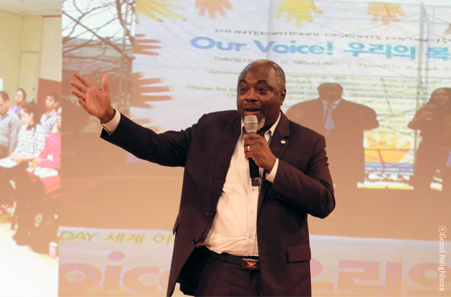 욤비 토나 광주대학교 교수의 이야기는 청중들에게 깊은 고민을 안겨주었습니다. 그는 콩고 출신 난민으로 2002년 한국에서 난민 신청을 했으나 난민 지위를 인정받기까지 6년이 걸렸습니다. 그의 이야기에는 한국에서 난민 이슈를 포함한 인도주의적인 활동은 아직 갈 길이 멀다는 메시지가 포함되어 있었습니다.