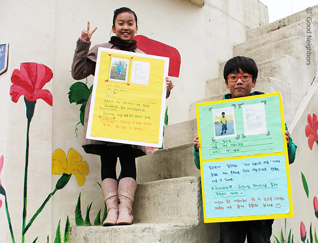 *엄마 : 사실 태양이가 여덟 살 때까지만 해도 학구열에 불타고 정보만 가득한, 어찌보면 평범한 대한민국 학부모였어요. 그런데 복지관을 통해 굿네이버스를 만나 봉사활동을 하고, 아이들과 함께 해외아동 1:1 결연후원을 하면서 자녀 양육에 대한 생각이 바뀌었어요. 이젠 공부 잘하는 아이보다는 행복한 아이로 자라줬으면 해요.