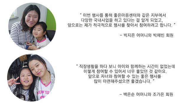 주말에 자녀와 함께 뜻 깊은 하루를 보낼 수 있어서 행복해하던 좋은이웃 회원님들의 밝은 미소가 아직도 선명합니다.
