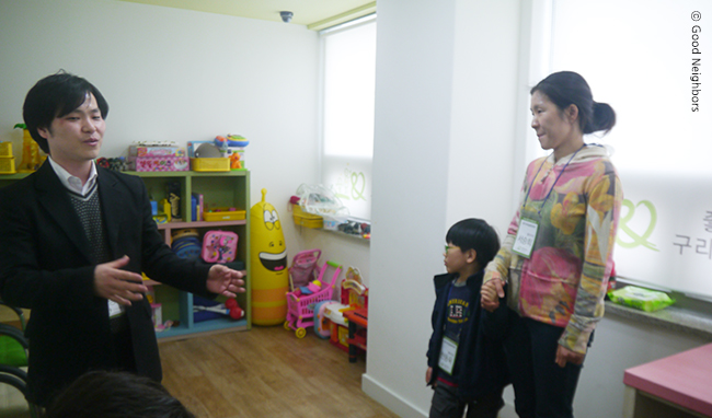 처음 만나 어색한 회원님들은 서로 자기소개를 하며 자녀와 함께 참여하게 된 동기를 가볍게 나누었습니다. 프로그램에 참여하기 앞서 지부장과 함께 센터에 있는 다양한 치료실을 둘러보며 굿네이버스 좋은마음센터에서 하는 사업들에 대해 알아보는 시간을 가졌습니다.
