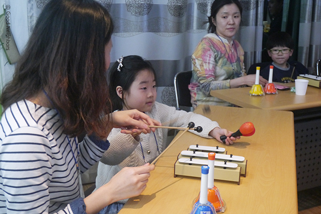 ‘학교 가는 길’ 노래를 들으며 선생님 손짓에 맞춰 자신의 악기를 연주하다 보니 어느새 모두가 힘을 합쳐 멋진 노래를 완성! 큰 박수와 함께 부모님과 자녀 함박미소를 지었는데요. 그 미소를 통해 ‘함께 완성했다’라는 뿌듯함을 느낄 수 있었습니다.