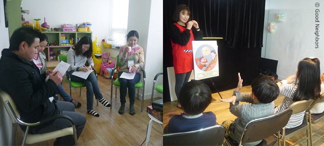 즐거운 음악 프로그램을 마치고 부모님들은 부모교육을 받고 올바른 자녀양육방법에 대해 듣는 시간을 가졌습니다. 이 교육을 통해 부모님은 자녀를 올바르게 키우는 방법에 대해서 한번 더 생각하게 되었고 우리 친구들은 성학대예방 인형극을 통해 위험상황에 대해 인지하고 어떻게 대처해야 하는지 배웠습니다.