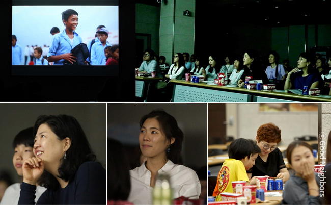 굿네이버스 자체제작 영화 수나칼리를 보기 위해 63명의 좋은이웃 회원님들이 굿네이버스 강당을 방문했습니다.