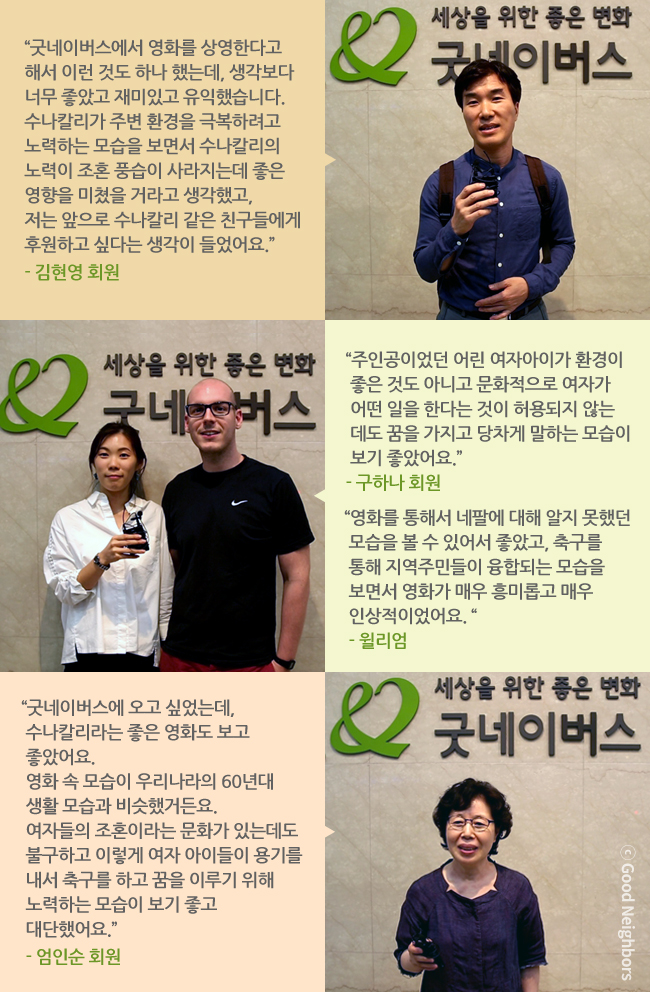 회원님들이 벅찬 기대와 함께 축구를 사랑한 네팔 소녀의 소중한 꿈과 열정을 담고 있는