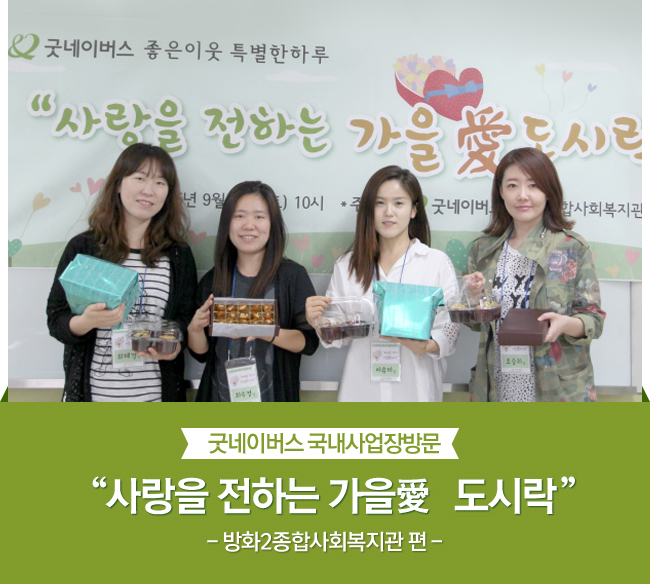 바로 어르신들께 특별한 하루를 선물하기 위한 좋은 이웃 회원님들의 발걸음이 이어졌기 때문입니다. 친구, 연인, 가족과 함께 한 '사랑을 전하는 가을愛 도시락', 웃음꽃이 피어났던 그 날의 이야기를 지금 들려드립니다.