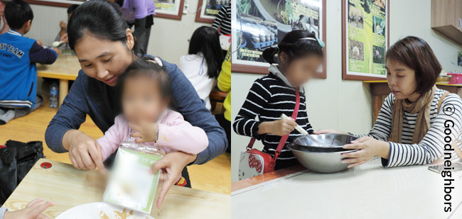 마지막으로 아이들과 직접 아이스크림을 만드는 시간을 가졌습니다. 모두들 한 번도 겪어보지 못한 특별한 경험이었는데요. 그래서인지 아이스크림이 만들어지는 과정을 보던 회원님들과 아동들의 눈이 휘둥그레졌습니다. 직접 만들어서 더욱 맛있는 아이스크림을 먹으며 10월의 좋은이웃 특별한 하루를 마무리하였습니다.