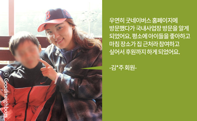 이렇게 한참을 달려서 소원터널에 도착하였는데요. 소원을 빌라는 말에 곰곰이 생각하던 아이들은 저마다 간절한 소원을 말하였습니다. 아픈 엄마를 걱정하던 한 아이는 “엄마가 하루 빨리 낫게 해주세요!”라는 기특한 소원을 빌기도 하였습니다. 따스한 눈길로 아이를 바라보던 회원님 역시 “아이의 엄마가 건강하게 해주세요!”라며 함께 소원을 빌었습니다.