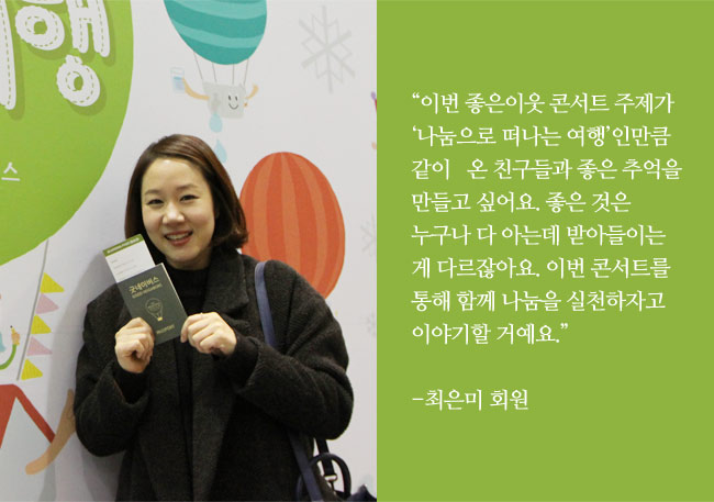 여행의 추억처럼 새로운 만남과 특별한 선물이 가득했던 2014년 좋은이웃 콘서트! 그 따뜻한 만남에 1,500여명의 좋은이웃이 모였습니다. 올해는 특별하게, 12월 4일과 5일 양일간, 서울과 부산 두 지역에서 콘서트가 진행되었는데요, 그 설렘 가득한 현장을 전합니다!