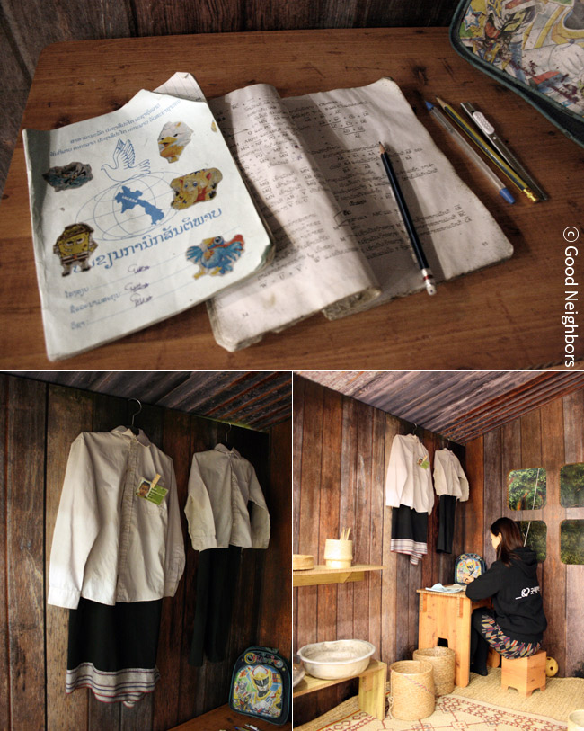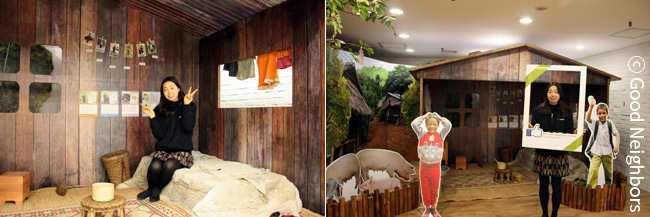 좋은 이웃 회원님들이 지구 반대편 아이들의 삶을 공감할 수 있도록 라오스에 살고 있는 결연 아동의 집을 그대로 굿네이버스 라운지에 옮겨왔습니다.
