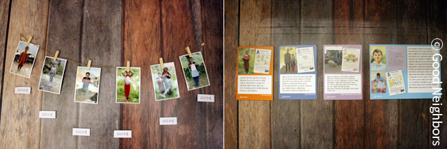 그 소중한 마음을 담아 집안 한 벽면에는 그 동안, 아이의 성장 모습이 담겨있는 사진들과 결연 아동이 정성스럽게 만들어본 감사 편지들이 걸려있는데요.