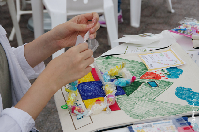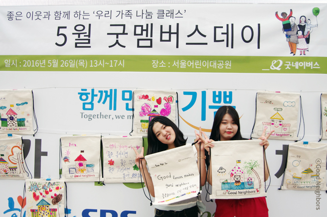 5월! 하면 어떤 생각이 떠오르시나요? 어릴 적에 친구들과 함께 불렀던 ‘5월은 어린이날 우리들 세상~♪’ 또는 거리에 흐드러지게 활짝 핀 빨간 장미? 아마, 굿네이버스를 사랑하시는 분들이라면 ‘5월 굿멤버스데이’가 생각나실거에요! 5월 굿멤버스데이는 특별히 가정의 달을 맞이하여 ‘우리가족 나눔 클래스’라는 주제로 어린이대공원 열린 무대에서 진행되었습니다. 굿네이버스 회원이 아니더라도 나눔에 동참하고 싶은 사람이면 누구나 희망가방과 캔디 목걸이를 만들어 나눔을 실천할 수 있는 시간이었습니다.
