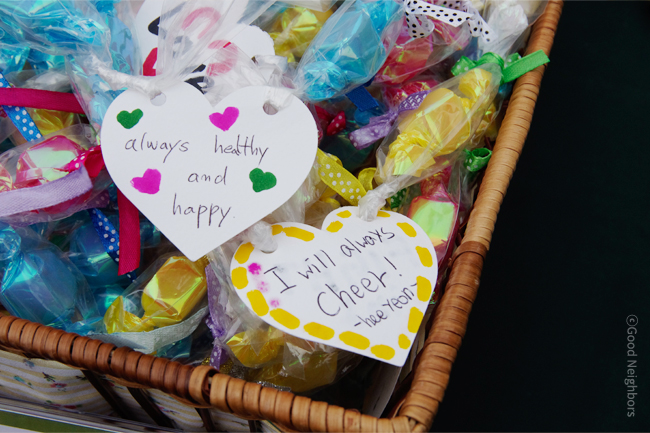 5월 어린이날이면 사탕목걸이를 목에 걸고 좋아했던 어린 시절 추억이 떠오릅니다. 이번 굿멤버스데이에서는 8월에 진행되는 해외사업장 방문을 통해 캄보디아와 탄자니아 아이들에게 가방과 함께 선물할 희망캔디 목걸이를 만들어 보았습니다. 알록달록 사탕을 넣으면서 목걸이를 받고 기뻐할 아이들을 떠올리며 ‘Always Healthy and happy’, ‘I will always Cheer!’ 등 아이들의 밝은 미래를 소원해봅니다. ‘얘들아! 희망캔디 먹고 즐겁게 뛰어 놀렴~’