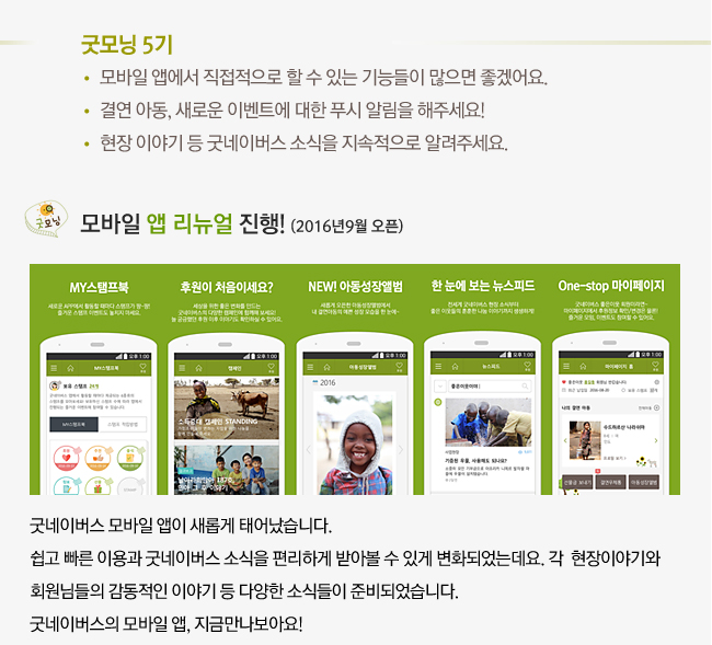 회원님들과 함께 만들어갈 굿네이버스를 기대해주세요.