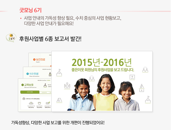 회원님들의 작은 목소리 하나 하나 모여, 굿네이버스가 성장하고 있는 모습들이 보이시나요?