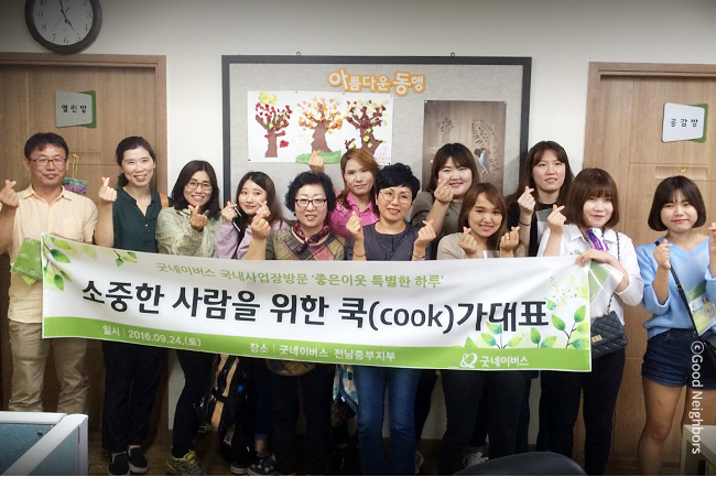 좋은 이웃 회원님들이 전국에 있는 굿네이버스 사업장을 직접 방문하여 모니터링 하고, 사업장에서 보호받고 있는 아동들과 즐거운 하루를 보내는 행사입니다. 2016년에는 3월, 6월, 9월, 10월에 진행하며 9월에는 전남중부지부와 경북동부지부를 방문하였습니다.
