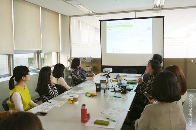 회원상담센터 세미나에서 굿모닝 8기 모니터링 결과를 공유하는 모습