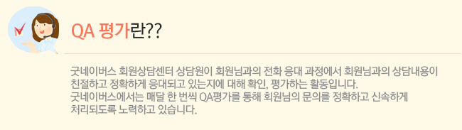 굿네이버스 회원상담센터에는 특별한 친절함이 숨어있다?!!! 회원상담센터에서는 더욱 좋은 이웃 회원님들에게 정확하고 친절하게 안내하기 위해 * QA(Quality Assurance) 통화품질 평가를 진행하고 있습니다.