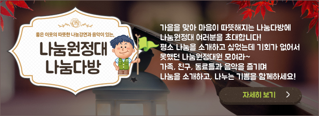 10월 굿멤버스데이를 통해 굿네이버스 해외지역개발사업에 관심을 갖고 참여해주신 회원님들께 진심으로 감사합니다. 다가오는 11월 5일 토요일에는 따뜻한 나눔강연과 음악이 있는 나눔원정대 나눔다방이 진행됩니다. 가족, 친구, 동료들과 함께 참여하셔서 나눔을 소개하고, 나눔의 기쁨을 함께 나누는 시간을 가져보세요~!