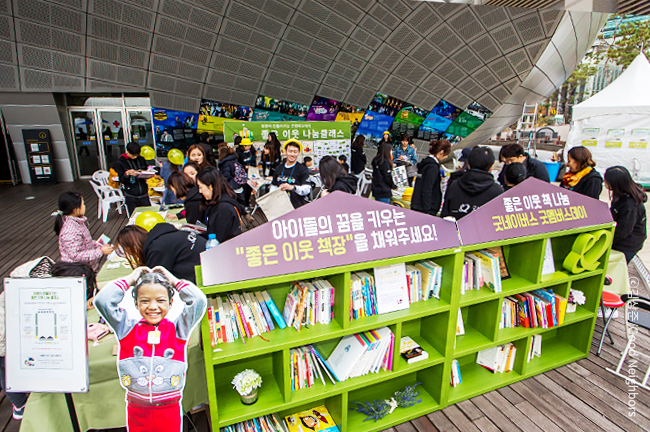 좋은 이웃 나눔 클래스의 첫 번째 나눔 코스는 ‘좋은 이웃 책장’입니다. 굿네이버스에서는 이번 굿멤버스데이를 통해 좋은 이웃 회원님들이 나눔을 실천할 수 있도록 국내사업장 아이들의 꿈을 키워줄 책 나눔을 모임 전에 부탁드렸는데요, 먼 곳에서부터 굿멤버스데이에 참여하기 위해 책을 가지고 오신 좋은 이웃 회원님 덕분에 나눔 책장은 시간이 갈수록 가득 채워져 갔습니다.