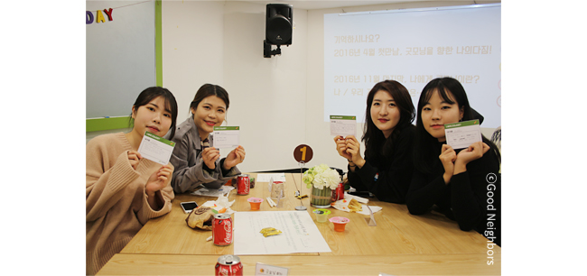 굿모닝 8기 활동은 2016년 굿네이버스의 사업과 캠페인을 모니터링할 뿐만 아니라 2011년부터 지금까지(굿모닝 1기부터 7기까지) 좋은 이웃 회원님들이 굿모닝에서 주신 의견들을 통해 굿네이버스가 변화된 모습까지도 확인할 수 있는 시간이었습니다.