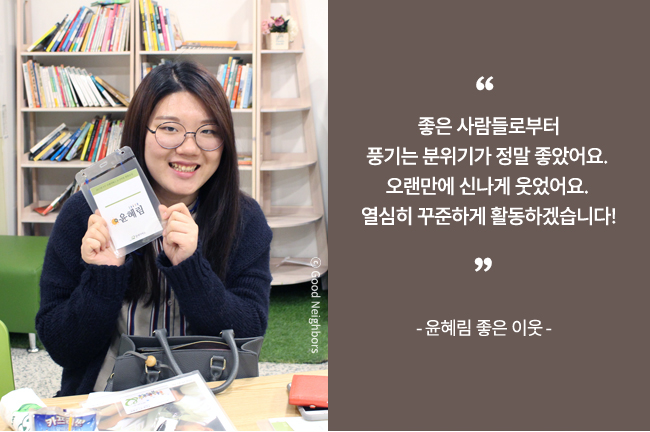 “좋은 이웃 회원을 대표해 목소리를 낼게요”