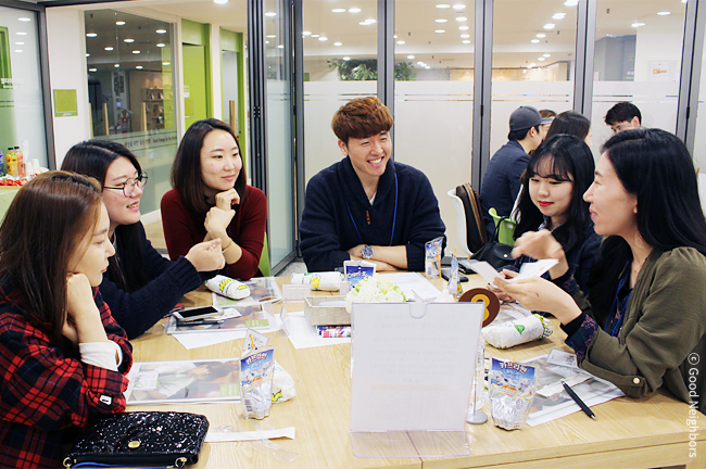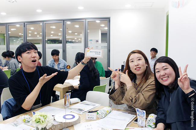 조원들과 반가운 첫 인사와 소개를 마친 후 조 이름과 개인 역할을 정했습니다. K-pop처럼 나눔도 즐거운 문화가 되기를 바라는 마음으로 회원님들은 굿네이버스와 함께 유익한 의견 공유를 다짐했습니다.