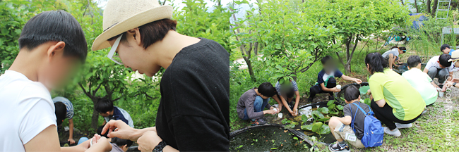 좋은 이웃과 짝꿍 아동이 함께 점심을 먹으며 자유시간을 보냈습니다. 맛있는 점심과 간식을 먹으며 서로에 대해 알아가고, 친해지기 위해 아이들과 좋은 이웃들은 식사 후 올챙이와 도롱뇽도 잡고 보리수나무 열매를 따먹으며 서로 가까워지는 시간을 가졌습니다.