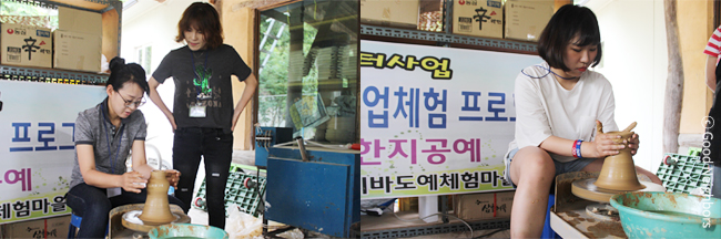 이번에는 물레를 통해 도자기를 만들어봅시다. 다들 손 끝에 집중을 하며 도자기를 만드는 모습이 멋진 작품이 나올 것은 느낌이예요.