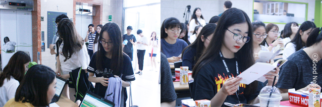 I’m your PEN 8기 연례아동서신 봉사자들이 오리엔테이션을 위해 굿네이버스 회관에 도착했습니다. 500명의 봉사자들이 모이는 오리엔테이션 현장은 좋은 이웃들의 따뜻한 마음으로 후끈후끈 합니다. 여러분에게도 느껴지시나요?^^ 일찍 도착해서 접수를 마친 PEN은 안내서를 숙지하며 앞으로의 I’m your PEN 활동을 설레는 마음으로 기대하고 있어요.