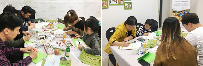 생생했던 우간다 현장이야기를 통해 한껏 두근대는 가슴을 부여잡고, NGO활동가 체험을 하였습니다! 굿네이버스 조끼를 입고 진지하게 긴급구호 현장의 영상을 보는 회원님들의 모습에서 NGO활동가로써의 면모를 엿볼 수 있었는데요. 특히 어떻게, 얼마나 구호물품을 배분하면 좋을지 계산기까지 두드려가며 고민하는 회원님들의 모습은 마치 실제 긴급구호를 하러 온 직원의 모습처럼 보이기도 했습니다^^